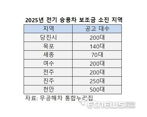 14일 무공해차 통합누리집에 따르면, 당진(200대), 목포(140대), 세종(70대), 여수(200대), 전주(200대), 진주(250대), 천안(500대) 등 20개 이상 지자체가 공고한 전기 승용차 보조금 접수가 조기 마감됐다. 보조금을 받을 수 있는 출고 잔여 대수가 200대 미만이거나 절반 이하인 지자체도 70여개에 달했다.
