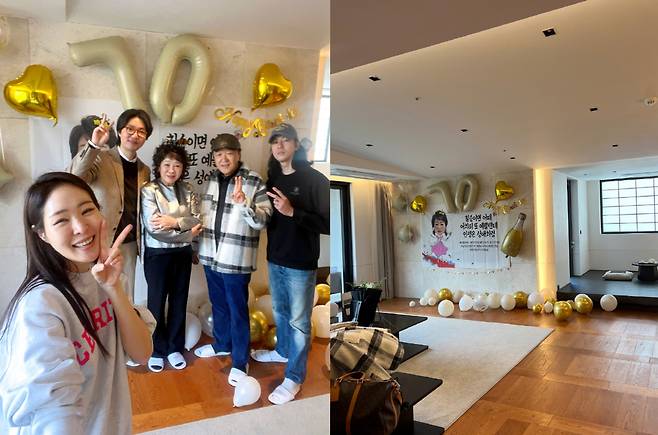 공개된 사진 속에는 고급 호텔에서 열린 칠순 파티 현장이 담겨 있다. '70'이라는 숫자 풍선과 화려한 장식으로 꾸며진 공간에서, 전성애 씨는 꽃다발을 들고 환한 미소를 짓고 있다. 가족들은 단란한 분위기 속에서 기념촬영을 하며 따뜻한 시간을 보냈다.