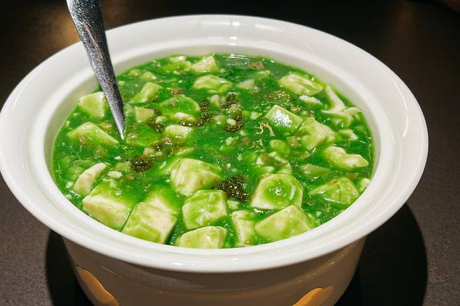 특이하게 초록색인 마파두부도 있다. 그린페퍼의 강한 풍미가 느껴지는데, 삼삼한 항저우 음식이 부족하게 느껴질 때 킥이 될 수 있는 요리다. 향신료를 좋아한다면 꼭 시켜봐야 할 메뉴.
