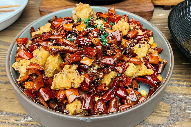 수북한 빨간 고추 사이에서 닭날개를 찾는 재미도 나름 쏠쏠하다. 맵싸하게 입맛을 돋우는 편이라 메인보다는 서브로 주문하는 것을 추천한다.