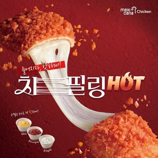 지난 3월 20일 신규 출시된 멕시카나치킨의 ‘치필링핫’은 ‘치즈치킨의 원조’로 자사의 베스트셀러 대열에 단기간에 이름을 올린 ‘치필링’에 트렌디한 매운맛이 더해진 제품이다. 케이준 스타일의 매운 맛을 베이스로 바삭한 크럼블과 부드럽고 고소한 100% 자연산 모짜렐라 치즈가 조화롭게 어우러져 누구나 부담없이 제품 특유의 매콤함을 즐길 수 있다. 특히, 제품 주문 시 기본으로 제공되는 소스 3종인 ▲핫파이어살사링 ▲딥치즈링 ▲올리브랜치링을 고객의 기호에 따라 다양하게 선택할 수 있도록 제품을 구성한 점이 소비자들의 호평을 자아내고 있다.