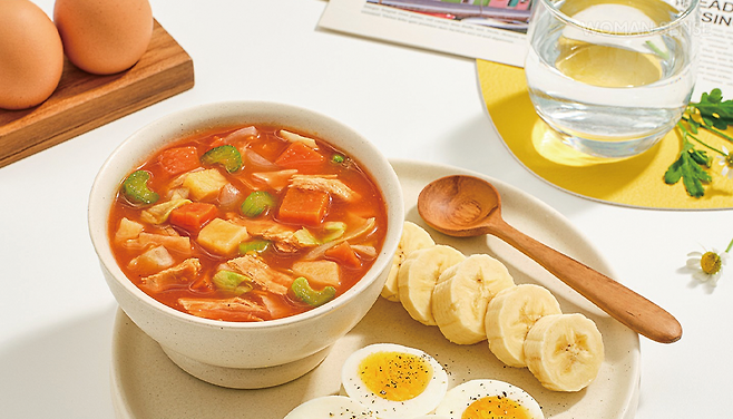 다이어터라면 한 번쯤 들어봤을 ‘마녀수프’의 2세대 버전. 토마토, 양파, 양배추, 당근, 셀러리 등 많은 채소를 손질해야 하는 번거로움을 덜어준다. 페어리레시피 식이섬유 요정스프 1팩에는 바나나 1개보다 약 2.5배 많은 7,000mg의 식이섬유가 들어 있다. 재료 본연의 식감을 살려 씹는 재미를 느낄 수 있고, 한국인이 좋아하는 약간의 매콤한 맛을 더했다. 파우치 위쪽의 절취선을 따라 자른 뒤 그대로 전자레인지에 데워 바로 먹을 수 있어 바쁜 직장인 다이어터에게 안성맞춤인 제품.