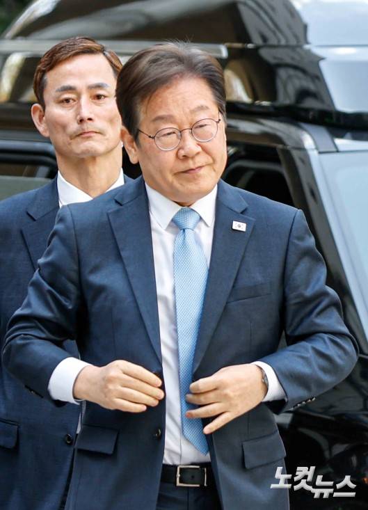 대권 도전에 나선 이재명 더불어민주당 전 대표가 15일 오전 서울 서초구 서초동 서울중앙지방법원에서 열린 대장동 배임 및 성남FC뇌물 1심 속행 공판에 출석하고 있다.