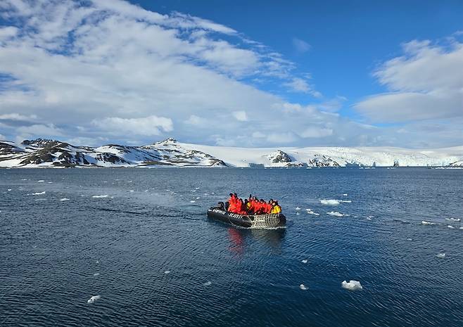 | ▲ 마리안소만에 떠 있는 조디악 세종 기지에서 다른 나라 기지로 가려면 고무보트 운항이 필수이다 |