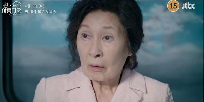 15일 JTBC 새 토일드라마 '천국보다 아름다운' 측은 첫 방송을 나흘 앞두고 사랑하는 남편을 따라 저승으로 떠나게 된 이해숙(김혜자 분)의 천국행 여정이 담긴 1회 예고편을 공개했다.