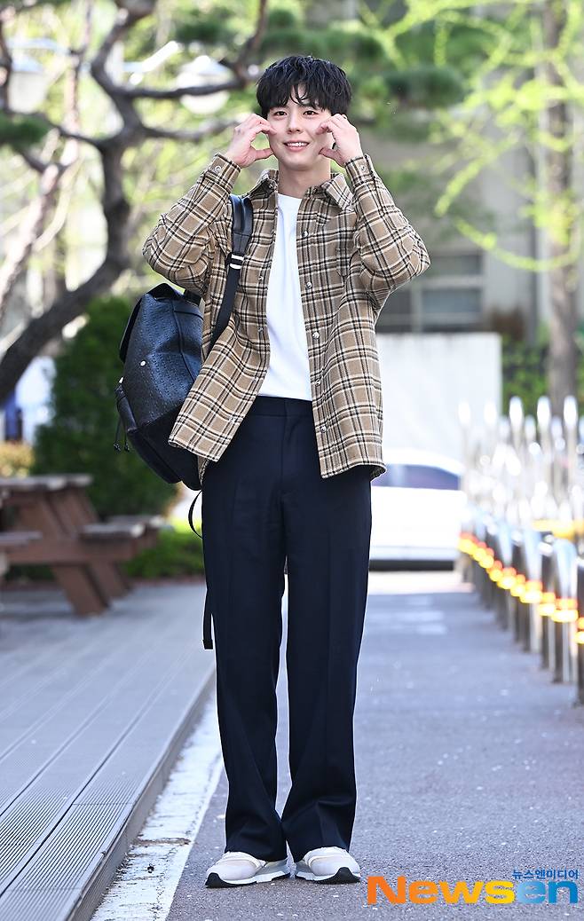 배우 박보검이 4월 15일 오후 서울 영등포구 여의도 KBS 신관에서 열린 KBS 2TV '더 시즌즈 - 박보검의 칸타빌레' 녹화일정에 참석하며 포즈를 취하고 있다.