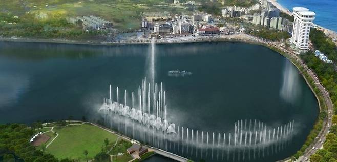 | ▲ 강릉시가 관광객 유치를 목적으로 명승지로 지정된 경포호에 대규모 인공분수 설치를 추진하고 있다. <조감도> |
