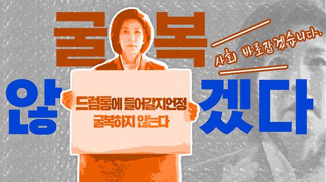 나 의원이 드럼통 안에 들어가가 "드럼통에 들어갈지언정 굴복하지 않는다"는 손팻말을 들고 있습니다.