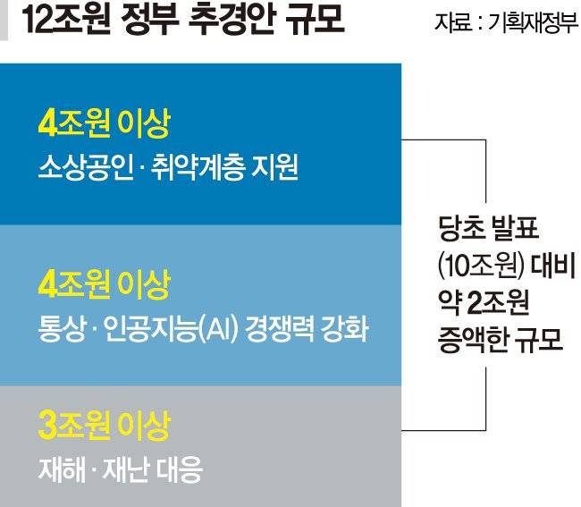 추경 2조 늘려 12조… 재난 3조·AI 4조·민생 4조 투입[추경 12조로 증액]