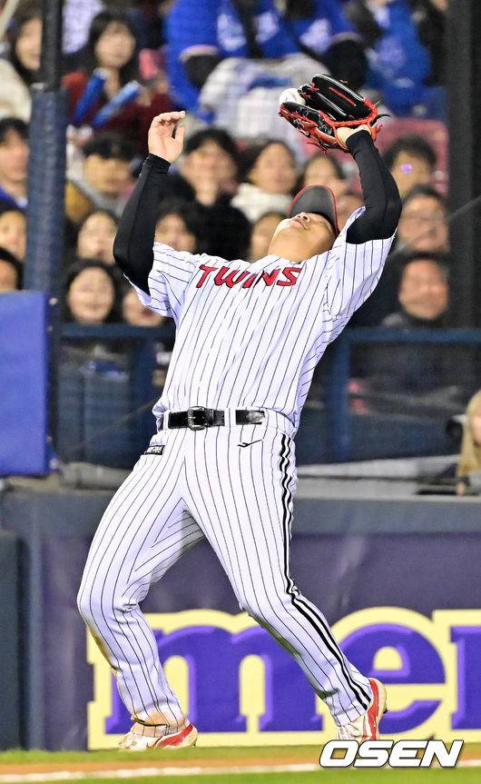 6회초 2사 주자 1루 삼성 김성윤의 파울플라이 타구를 LG 3루수 문보경이 잡아내고 있다. 2025.04.15 / rumi@osen.co.kr