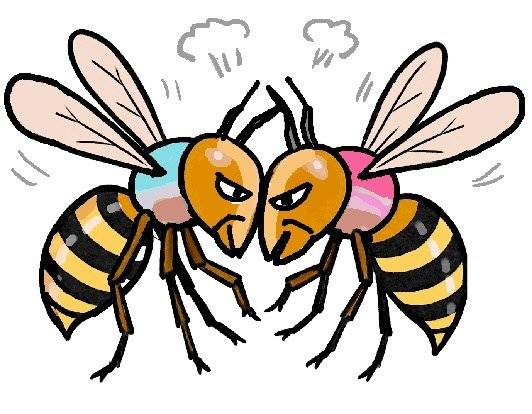 둘은 성향이 완전히 달라서 그런지 힘의 균형이 한쪽으로 기울어지곤 했다. 공격적인 성향을 가진 한 녀석이 다른 녀석을 틈만 나면 못살게 굴었다. 가다그카르는 말벌들을 쉽게 알아보기 위해 그들의 몸에 특정한 색깔을 칠한 다음, 그 색깔로 이름을 정했는데, ‘파랑’을 괴롭힌 건 ‘빨강’이었다. 파랑 역시 당하고만 있지는 않아 둘이 엉겨 붙어 싸우곤 했는데 그럴 때마다 여왕벌이 중간에 끼어들어 둘을 떼어놓곤 했다.
