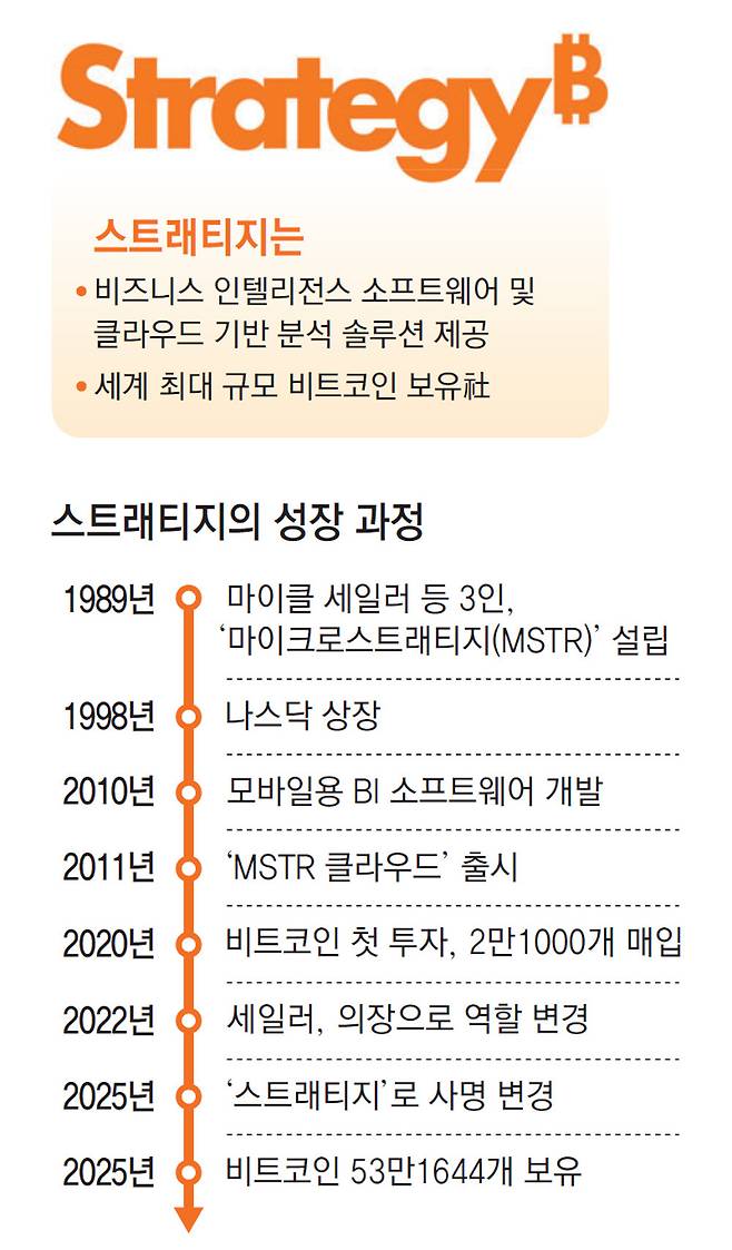 세계에서 비트코인을 가장 많이 보유하고 있으며 심지어 기업의 정체성을 ‘비트코인 축적 회사(Bitcoin Development Company)’로 정의한 이 회사, 바로 ‘스트래티지(Strategy)’다.