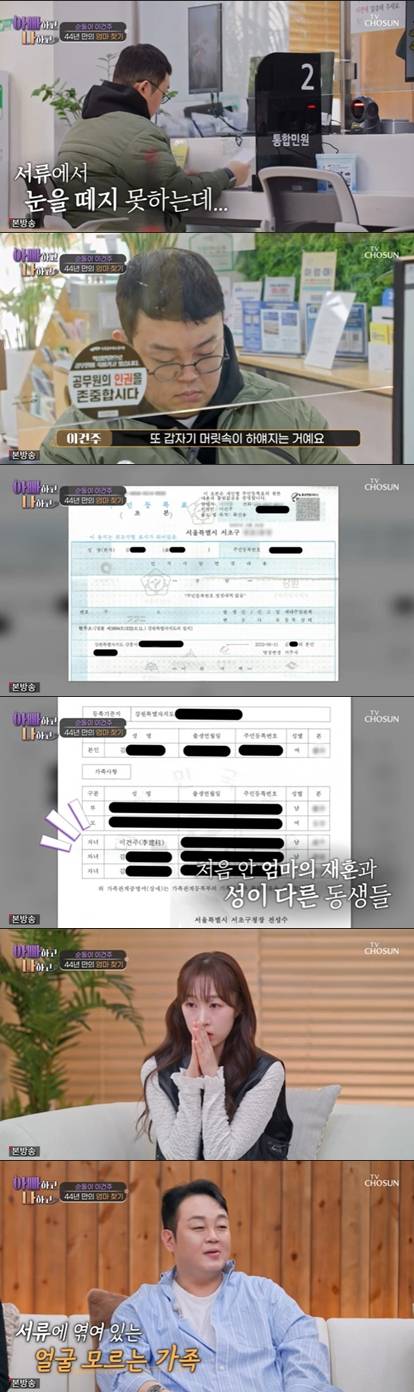 하지만 어머니의 주민등록초본까지 신청해 이를 확인한 이건주는 표정이 굳었고, "갑자기 머릿속이 하얘졌다"라며 말했다.