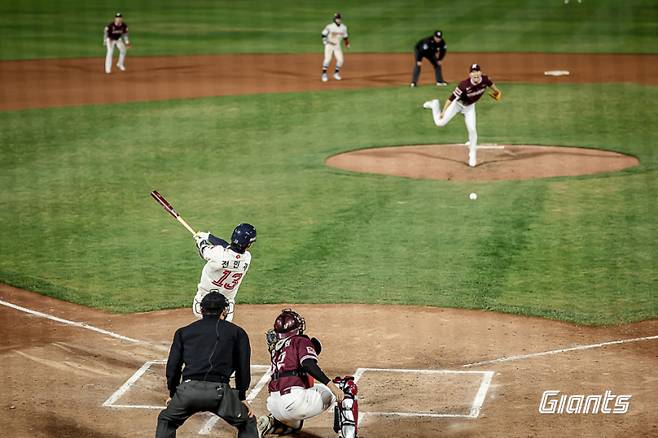 전민재는 6회 말 무사 1루에서 황성빈이 기습번트로 주자 장두성을 2루에 보낸 상황에서 세 번째 타석을 소화했고, 투수 오석주를 상대로 깔끔한 우전 안타를 치며 2루 주자 장두성을 홈으로 불러들였다.