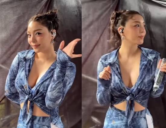 영상에는 워터밤 백스테이지에서 흥겹게 리듬을 타고 있는 에일리의 모습이 담겼다. 에일리는 데님 셔츠를 리본 형태로 묶은 과감한 스타일링을 소화하며 서머퀸의 귀환을 제대로 알렸다.