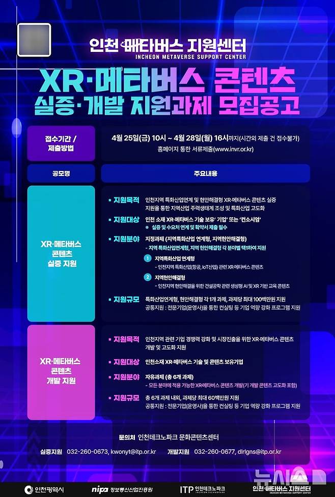 이번 공모는 과학기술정보통신부, 정보통신산업진흥원, 인천시가 지원하는 '인천 메타버스 지원센터 운영사업'의 일환으로 추진된다.