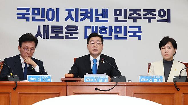 ▲ 더불어민주당 박찬대 당 대표 직무대행이 16일 서울 여의도 국회에서 열린 최고위원회의에서 발언하고 있다.
