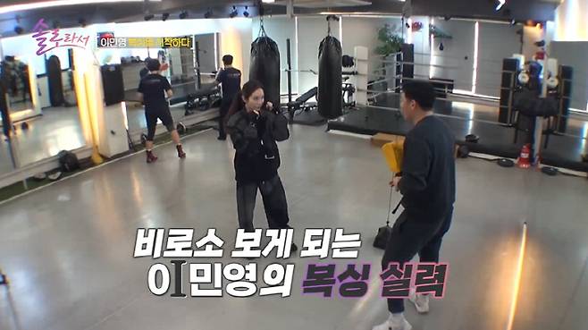 15일 방송된 SBS Plus·E채널 공동 제작 예능 '솔로라서' 15회에서는 새집으로 이사간 이민영의 확 달라진 일상이 그려졌다. 이날 이민영은 '극I' 성향에도 불구하고 복싱에 도전하는가 하면, 동네 전통시장을 누비며 주민들과 적극 소통하는 모습을 보여줘 반전 매력을 발산했다.