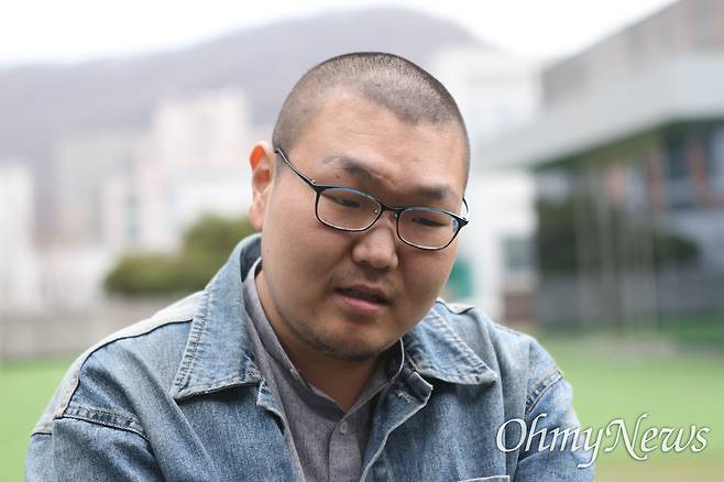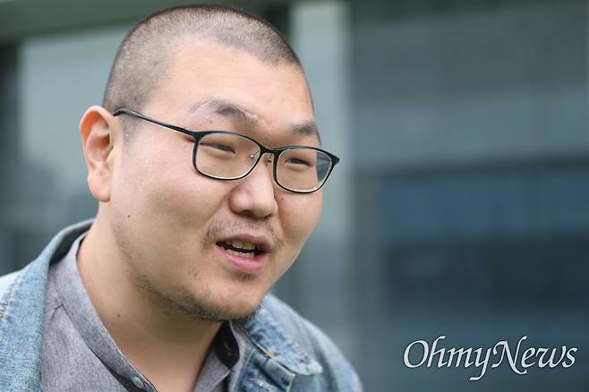 | ▲ 임명묵 작가가 지난 10일 경기도 광명시의 한 카페에서 <오마이뉴스>와 인터뷰하고 있다. |
