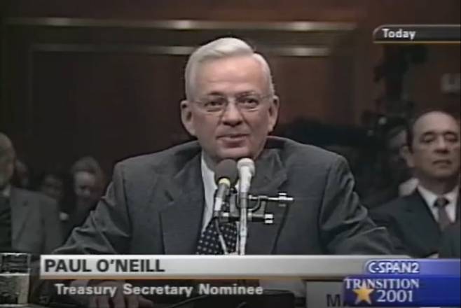 조지 HW 부시 행정부 때인 2001년 1월 16일. 달러 가치가 급락했습니다. 재무부 장관 지명자 폴 오닐(사진)의 인사청문회를 하루 앞두고 뉴욕타임즈가 쓴 기사가 발단이 됐습니다. 바로 "그(오닐)는 수출업자이기에 달러 약세를 선호할 것으로 예상되지만 이러한 의문에 대해 그 어떤 발언도 하지 않았다"는 문장입니다. 알루미늄 제조업체 알코아의 최고경영자(CEO)인 오닐이 달러 약세를 선호할 것이라는 게 당시 미국 언론의 분석이었습니다.