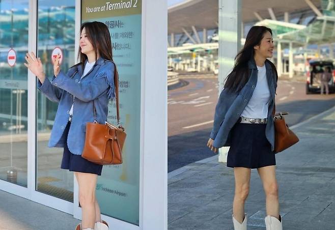 이날 고현정은 램 스웨이드 레니 재킷과 코튼 저지 소재의 티셔츠를 착용하고 우아한 분위기를 드러냈다. 클래식한 무드와 빈티지 감성을 조화롭게 녹여낸 공항패션이 시선을 끈다.