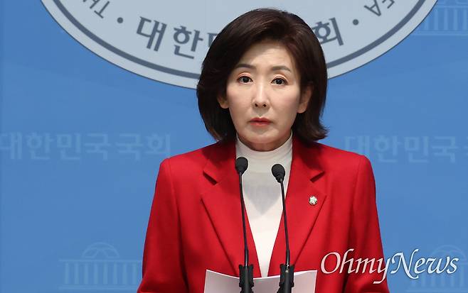 | ▲ 제21대 대통령 선거 출마를 선언한 나경원 국민의힘 의원이 15일 오전 서울 여의도 국회 소통관에서 G5 강국 공약을 발표하고 있다. |