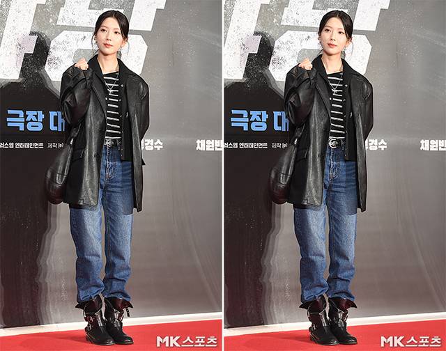 이날 시사회에서 하서윤은 오버핏의 레더 재킷에 데님 팬츠와 버클과 지퍼 디테일의 블랙 부츠를 매치해 귀여운 외모와는 달리 터프한 패션을 선보여 이목을 끌었습니다.