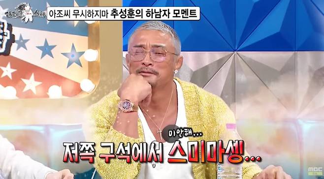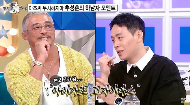 16일 MBC '라디오스타' 측은 "'아조씨 무시하지마' 추성훈의 하남자 모멘트"라며 선공개 했다.