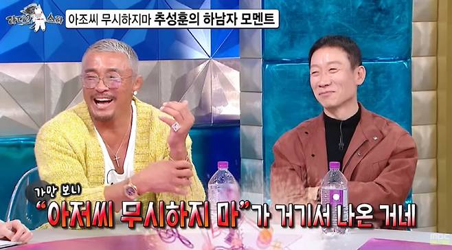 이를 들은 김구라는 "'아저씨 무시하지마'가 거기서 나온 거다"고 하자, 추성훈은 "너무 무시하니까"라고 해 웃음을 안겼다.