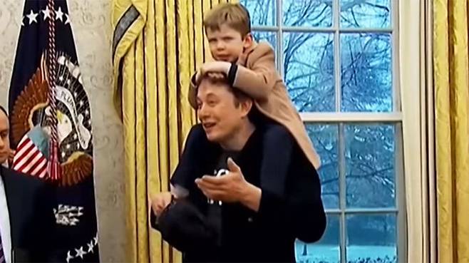 ▲ 아들 백악관 집무실에 데려온 일론 머스크