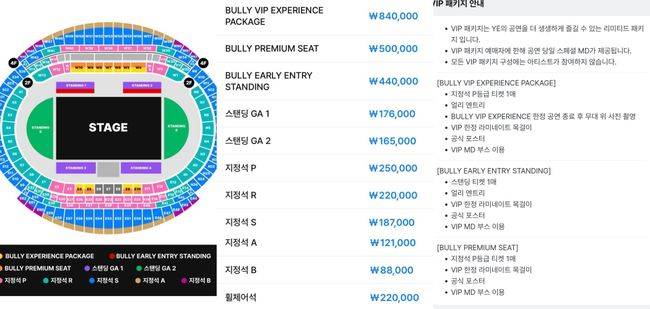 더군다나 패키지에 포함된 좌석은 P석 중에서도 무대에서 가장 가까운 구역이다. 가장 좋은 명당 자리에 앉기 위해서는 일반 지정석이 아닌 VIP 패키지를 구매할 수밖에 없는 셈이다. 이에 일각에서는 과연 84만원을 내면서 까지 관람할 가치가 있는가에 대한 의문이 제기되고 있다.
