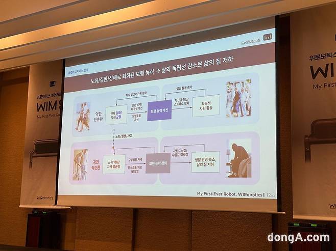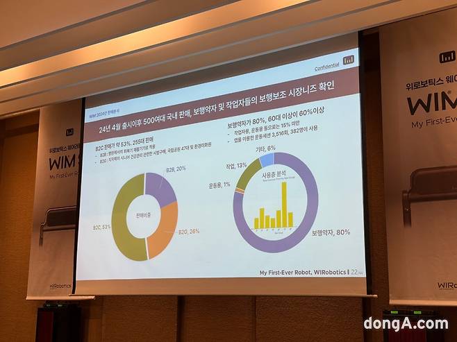이연백 위로보틱스 대표는 개인용 보행보조 로봇 ‘윔 S’ 신제품 출시현장에서 자신감 있는 목소리로 말했다. 제품 가격(279만 원)이 비싸다는 기자 질문에는 비슷한 의료기기를 예로 들며 성능이나 우수성을 고려했을 때 높지 않은 가격이라고 설명했다.