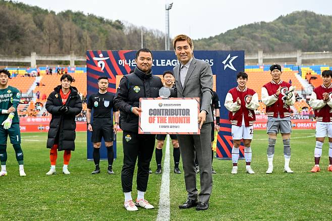 강원FC는 지난 13일 춘천송암스포츠타운 주경기장에서 열린 하나은행 K리그1 2025 8라운드 광주FC와 홈경기에서 3월의 공헌상 시상식을 진행했다.