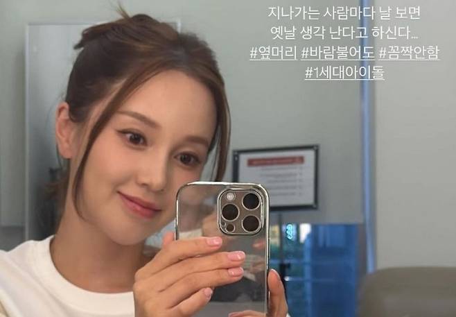 아유미는 “착한 몇 분이 예쁘게 나왔다고 해주시니 피드에도... 다시 옆머리 붙이고 살아보까 ㅋㅋㅋ 스프레이 1통 썼던 그 시절이 그립”이라며 과거를 그리워하기도 했다.