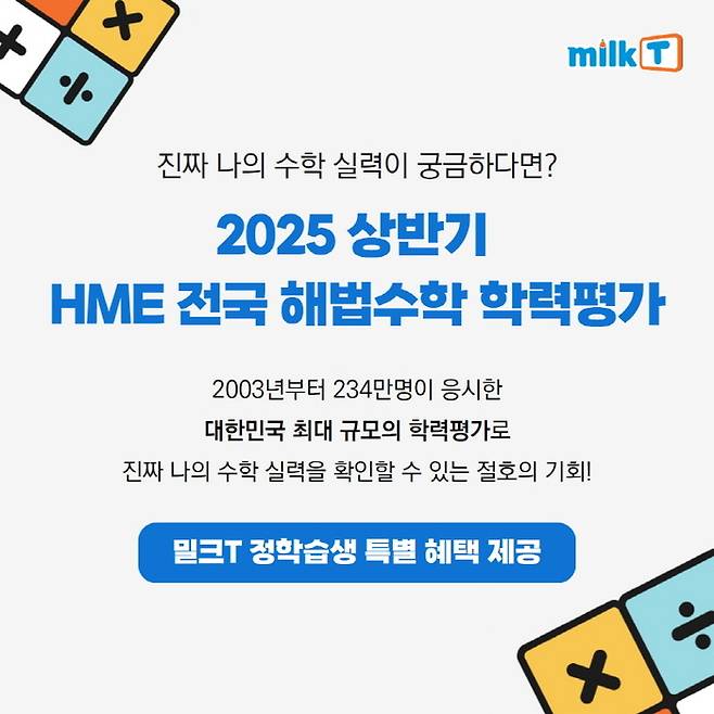 천재교육·천재교과서 밀크티, 'HME 해법수학 학력평가' 접수 혜택 제공