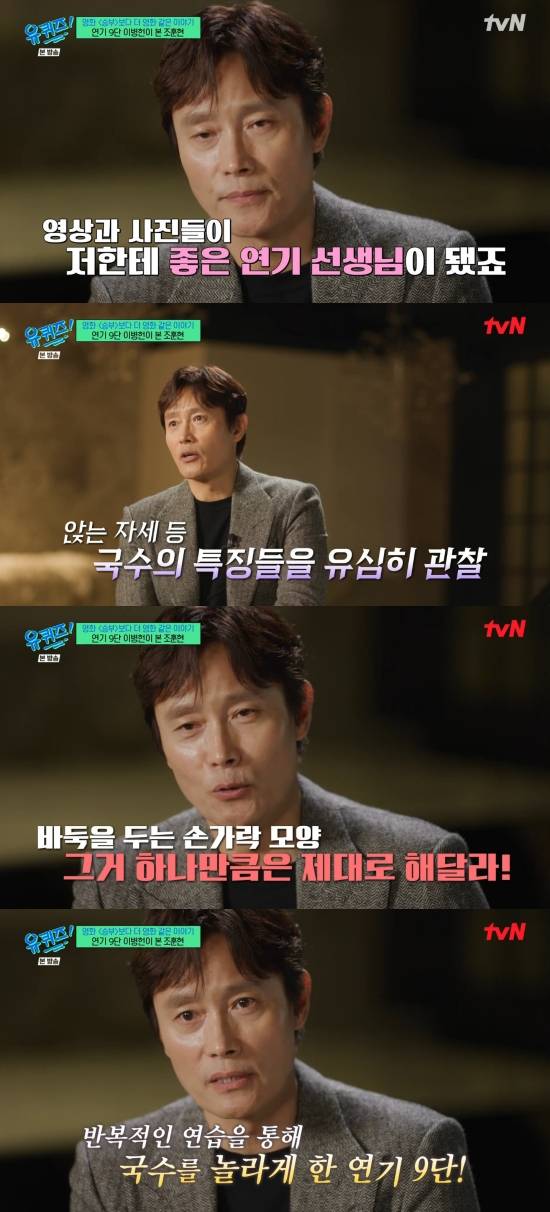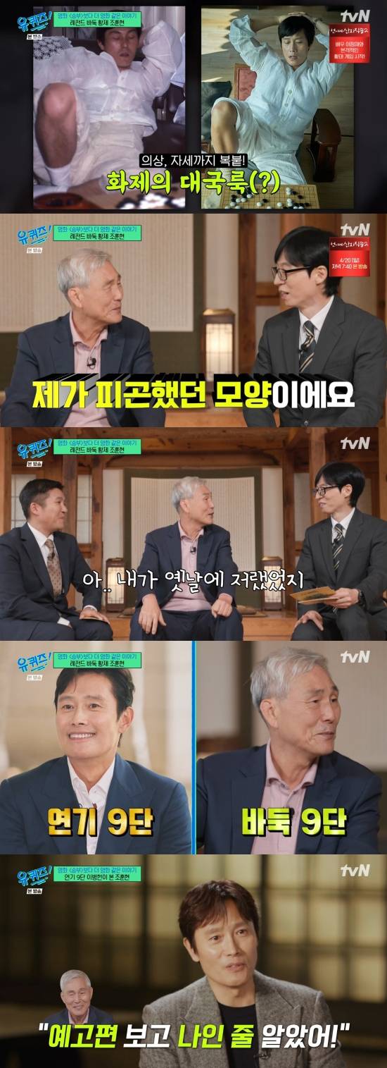16일 방송된 tvN '유 퀴즈 온 더 블럭'(이하 '유퀴즈')에서는 '사활을 걸다' 특집으로 꾸며진 가운데 영화 '승부'에서 조훈현 국수를 연기한 이병헌이 등장한 장면이 전파를 탔다.