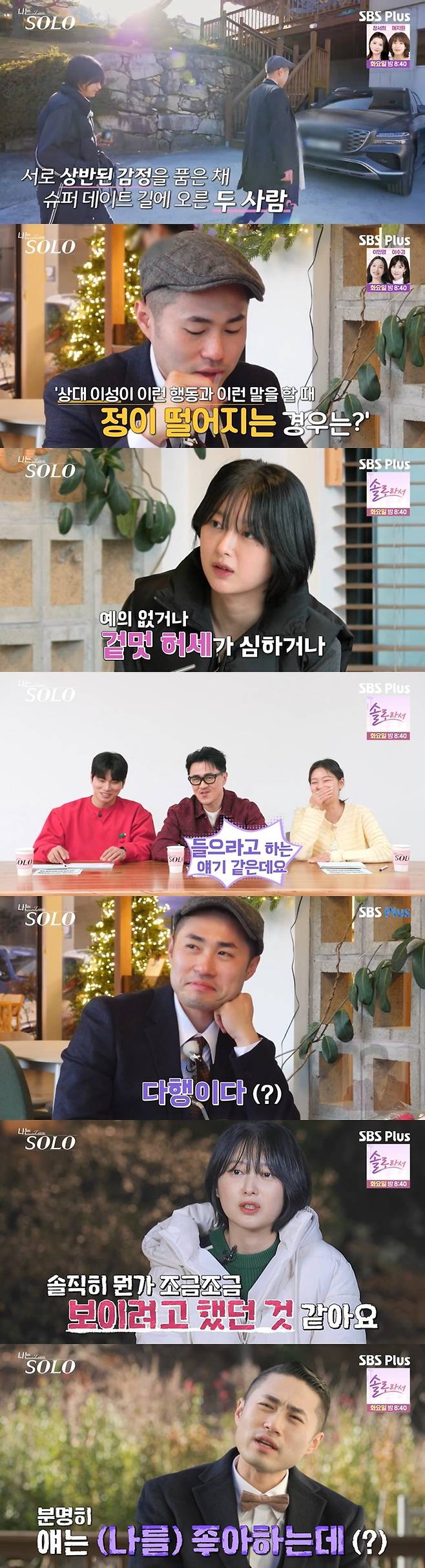 영자가 "뭐가 궁금하냐"고 하자 영수는 "이런 행동, 말을 했을 때 정이 떨어진다?"고 물었고, 영자는 "예의 없거나 겉멋 허세가 심하거나 술에 취했을 때 답이 없는 사람"이라고 답했다.
