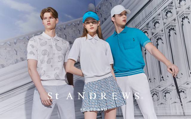 세인트앤드류스는 페이즐리 모티브를 브랜드 특유의 세련된 감성으로 재구성해 다채로운 컬러와 패턴으로 풀어냈다. 매트한 질감의 오렌지부터 시원한 터쿼이즈 컬러까지 다양한 색상을 조화롭게 매치해 생동감 있는 여름 팔레트를 완성했다. 상하의 셋업 아이템은 이번 컬렉션의 주요 아이템이다. 구조적인 디자인과 가볍고 활동적인 실루엣이 어우러져 필드와 일상 모두에서 감각적인 스타일을 연출할 수 있다는 게 회사 측 설명이다.