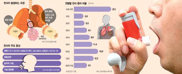 하지만 천식은 전 세계적으로 소아와 성인 모두에서 흔한 질병이다. 우리나라에서도 유병률이 매우 빠른 속도로 증가하면서 전 국민의 5~10%가량이 천식 환자로 추정된다. 코로나19가 주춤하면서 마스크 착용이 줄어든 데다 봄철 황사, 미세먼지 등 환경오염이 심화하고 비만·스트레스 등이 증가한 점이 주된 원인으로 꼽힌다.