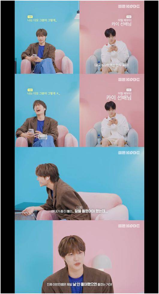 15일 KODE 코드 유튜브 채널에서는 '나를 안달나게 하는 SM직속 후배? EXO 카이 & NCT WISH 유우시[셀폰 KODE' 영상이 공개됐다.