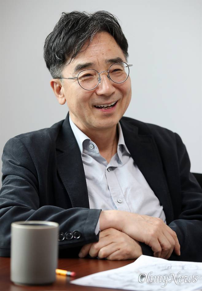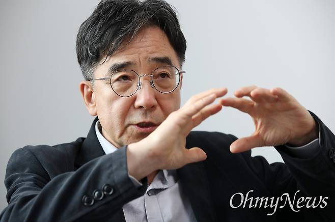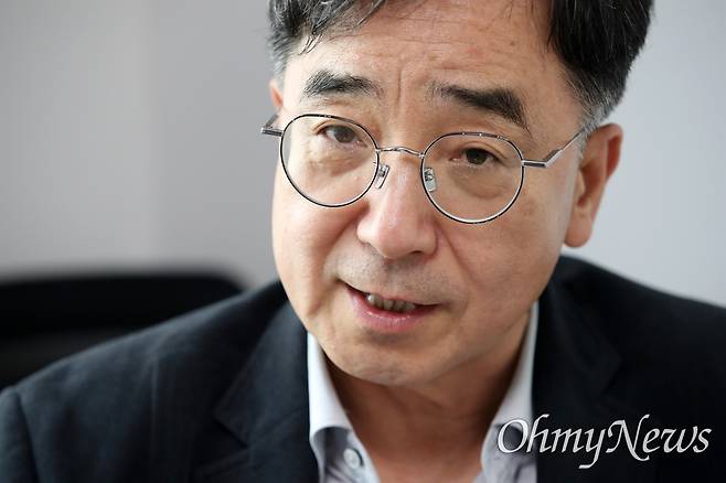 | ▲ 유종일 <성장과통합> 공동대표가 15일 오후 서울 마포구 '성장과통합' 사무실에서 오마이뉴스와 인터뷰를 하고 있다. |