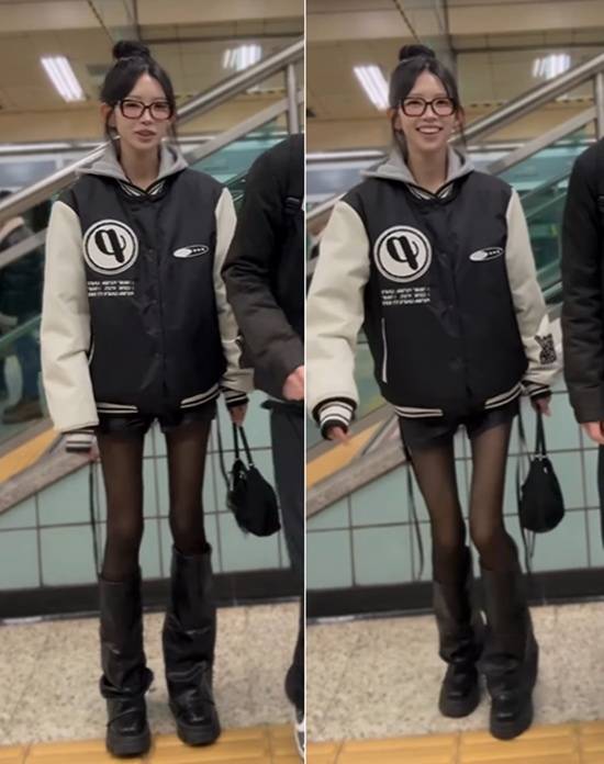 영상 속 최준희는 오버사이즈 야구 점퍼에 짧은 팬츠, 블랙 스타킹과 롱부츠를 매치해 전체적으로 개성 있고 눈에 띄는 패션 스타일링을 완성한 모습이다.