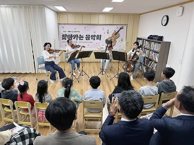 개그우먼 나현영의 사회로 진행된 '찾아가는 음악회'는 공연에 앞서 아이들을 위한 퀴즈 게임으로 긴장을 풀어가며, 현약4중주를 구성하는 바이올린, 비올라, 첼로 등의 악기에 대해 소개하고, 각 악기의 음을 짧은 연주로 들려주어 관객들의 이해를 도왔다.