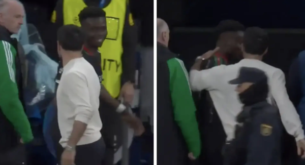 ‘레알 부주장 인성 왜 이러나’ 경기도 안 뛰는데…전반 마친 아스널 선수 ‘뒷목 붙잡고 신경전’