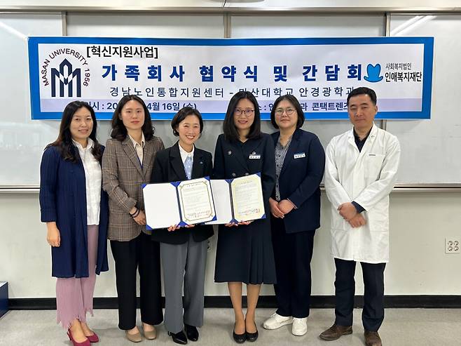 마산대학교 안경광학과(학과장 김정숙)는 16일 경남노인통합지원센터(관장 김양언)와 서비스러닝 교육지원을 위한 업무협약을 체결했다.