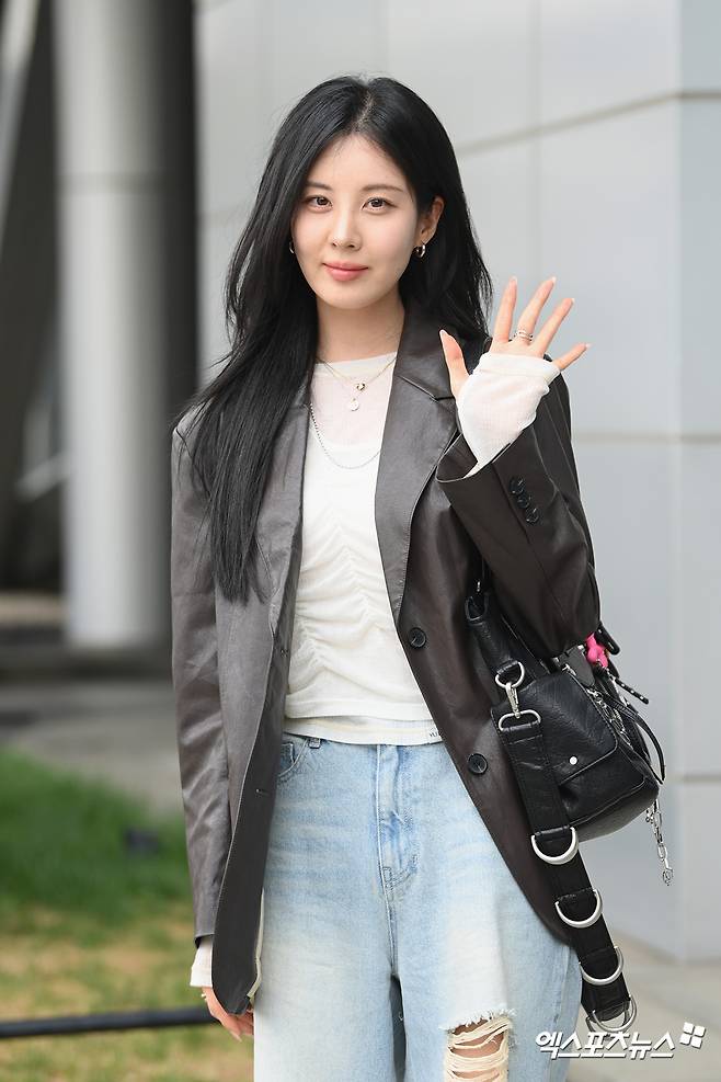 이날 서현은 빈티지한 찢청 데님 팬츠와 블랙 가죽 재킷, 화이트 시스루 레이어드 상의를 매치해 세련된 믹스매치 스타일을 완성했다.