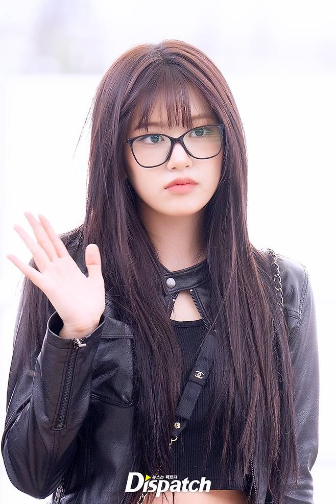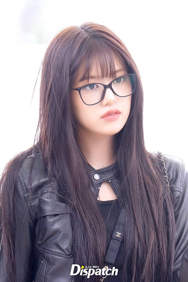 안유진은 블랙 핫팬츠에 레더 재킷으로 시크한 공항패션을 연출했다. 우월한 미모가 돋보였다.