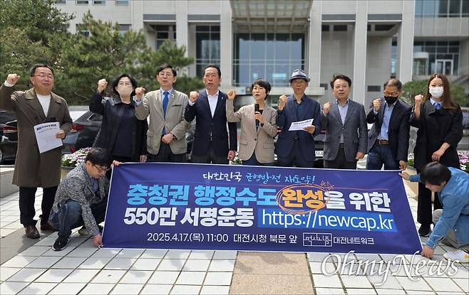 먹사니즘 대전네트워크는 17일 대전시청 북문 앞에서 기자회견을 열고 "행정수도 세종을 완성하기 위해 충청권 550만 서명운동을 시작한다"고 선포했다. 이를 위해 이들은 온라인 서명 공간(https://www.newcap.kr/)을 마련했다.
