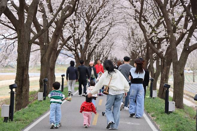 보은군은 지난 4일부터 13일까지 10일 일정으로 '벚꽃따라 설레어 봄'을 메시지로 한 보청천 벛꽃길 축제를 개최했다. 삼산리 쪽과 죽전리 쪽 합수머리에 축제거점이 될 무대를 놓고 축제 장소를 꾸몄다. 또 푸드트럭에서 제조되는 간편한 간식거리, 소상공인의 제품판매, 프리마켓, 체험부스, 군정홍보부스, 어린이 놀이시설 등을 설치해 축제장의 구색을 갖췄다.
