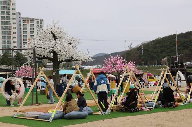 | ▲ 벚꽃길축제의 피크닉존에서 방문객들이 축제를 즐기고 있는 모습이다. |